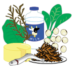 チーズなどの乳製品、小魚、ひじき、しそ、春菊、納豆などの大豆食品 など |
